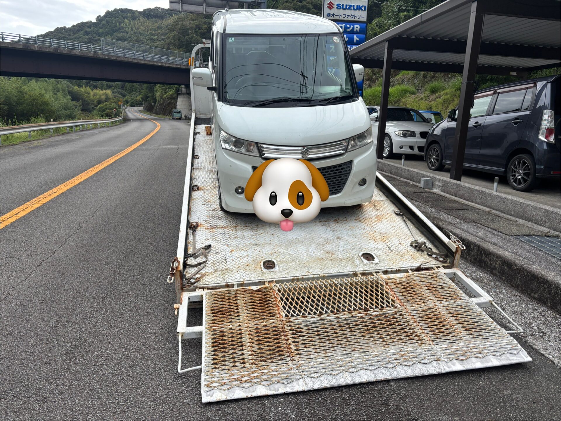 まずフロントガラスが割れたまま公道を走行すると道交法違反となるため、お客様から保険会社へ連絡していただき、自社の積載車で移動させることとなりました。